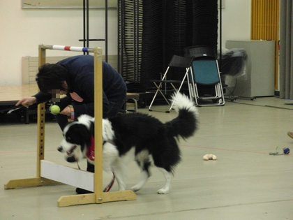 通常 犬が1頭で飛ぶハードルを デカボー ウタリ(23キロ)と