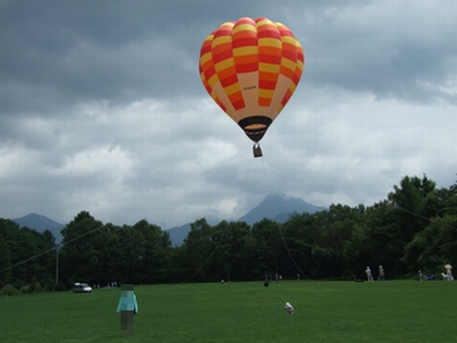 広い 牧草地(たぶん)では気球の体験搭乗もやっていたよ。