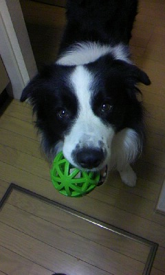 キッチンにまでボールを持ってきて 「あそぼ